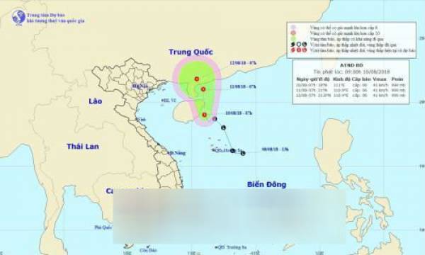 Theo bản tin của Trung tâm Dự báo Khí tượng Thủy văn Quốc gia, sáng 10/8, vùng áp thấp trên khu vực phía Tây Bắc quần đảo Hoàng Sa đã mạnh lên thành áp thấp nhiệt đới. Hồi 7 giờ, vị trí tâm áp thấp nhiệt đới ở vào khoảng 19,0 độ Vĩ Bắc, 111,0 độ Kinh Đông, ngay trên vùng biển phía Đông đảo Hải Nam (Trung Quốc). Sức gió mạnh nhất vùng gần tâm áp thấp nhiệt đới mạnh cấp 6 (40-50 km/giờ), giật cấp 8. Phạm vi gió mạnh cấp 6, giật cấp 8, khoảng 50 km tính từ tâm áp thấp nhiệt đới.