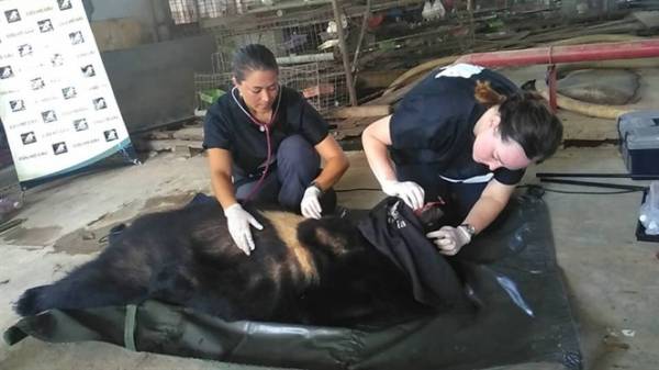 Các bác sĩ thú y của Animals Asia khám tổng thể gấu trước khi vận chuyển về Trung tâm cứu hộ