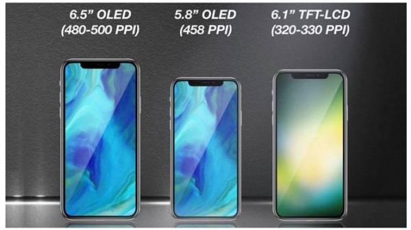 iPhone 6,1 inch sẽ chỉ được trang bị màn hình LCD và một máy ảnh đơn ở phía mặt lưng, trong khi hai thiết bị còn lại có màn hình OLED và camera kép. Nối tiếp iPhone X, cả 3 thiết bị mới sẽ sử dụng camera TrueDepth và Face ID để xác thực người dùng và mở khóa điện thoại.