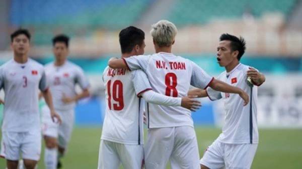 Olympic Việt Nam chính thức giành ngôi nhất bảng D môn bóng đá nam ASIAD 2018. Ảnh: Goal