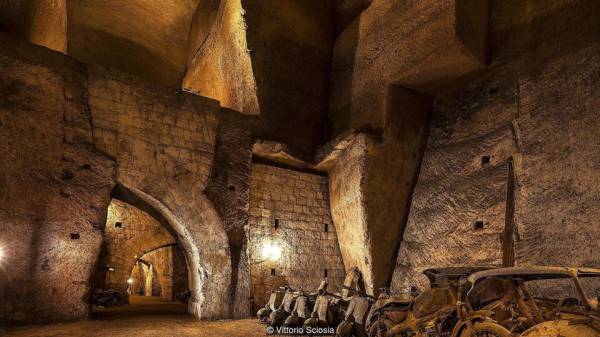 Năm 2005, trong lúc kiểm tra một số mỏ đá dưới khu vực Monte di Dio tại thành phố Naples (Italy), các nhà địa chất của chính phủ tình cờ phát hiện một trong những hệ thống ngầm với những lối đi đầy ấn tượng được làm từ thời xưa. Nằm sâu 150 m dưới quảng trường Piazza del Plebiscito, những chiếc xe hơi cổ và các di tích bị lãng quên từ thời Chiến tranh Thế giới II. Ảnh: Vittorio Sciosia.