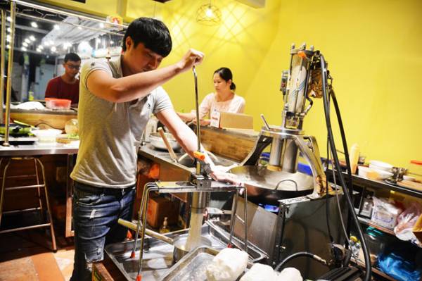 Tại "Bún quậy Saigon", thực khách hoàn toàn có thể "mục sở thị" quy trình làm bún, cũng như tự tay làm nên tô bún cho mìnhHOÀI NHÂN