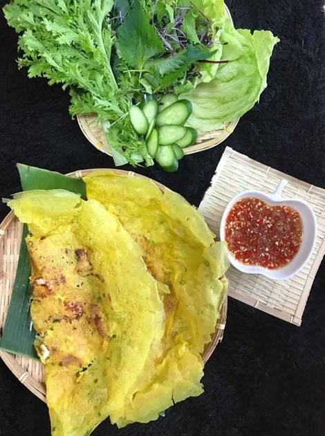 Dọn bánh ăn cùng rau và nước mắm ngon chua ngọt.