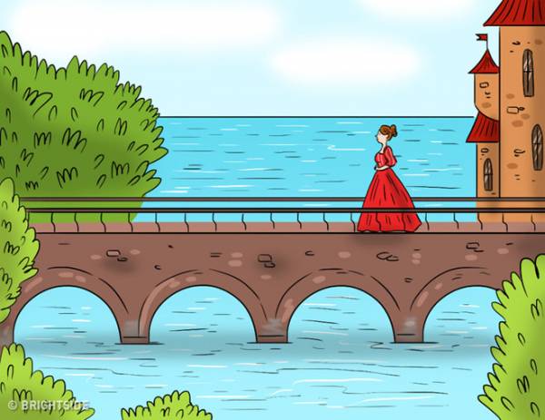 Khi người canh gác vào trong lều, cô gái bắt đầu đi qua cầu. Cô đi bộ trong vòng 5 phút khi anh ta ở trong lều rồi đi ngược lại về phía vương quốc.