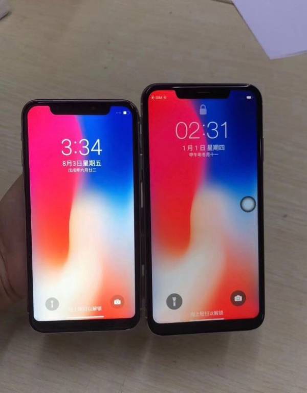Theo đó, cả hai máy có ngoại hình tương tự chiếc iPhone X, trong đó mẫu iPhone X Plus hàng nhái có kích thước lớn hơn hẳn.