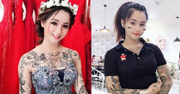 Cô gái có gương mặt rất xinh đẹp và hình xăm kín người.