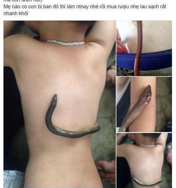 Bạn trẻ Quỳnh Đào đưa ra lời khuyên: “Khi con bị sốt, hãy lấy con lươn sống lăn qua lăn lại lưng của bé, phương pháp này cực kỳ hiệu quả. Mình đã áp dụng cho con mình rồi, bạn cứ thử xem”.