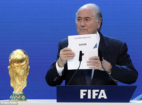 Chủ tịch FIFA Sepp Blatter thông báo Qatar được trao quyền đăng cai World Cup 2022.
