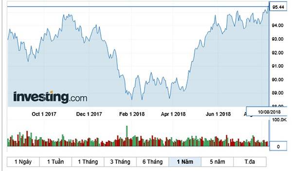 Tác động tiêu cực của chiến tranh thương mại Mỹ - Trung và động thái tăng lãi suất của FED trước đó đã khiến đồng USD lên giá so với nhiều đồng tiền trên thế giới, trong đó có VND. Tính tới sáng 10.8, chỉ số USD trên thế giới tiếp tục tăng mạnh, có thời điểm ở mức 95,85 điểm, cao nhất trong vòng 1 năm trở lại đây.