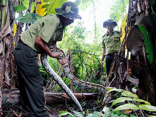 Cá thể Trăn gấm cái nặng 28kg mà người dân xã Trường Long A, huyện Châu Thành A bắt được ngoài đồng hoang và giao nộp cho cơ quan chức năng trong tình trạng bị nhiều vết thương. Sau khi tiếp nhận, Chi cục Kiểm lâm đã phối hợp chăm sóc, nuôi dưỡng khỏe mạnh. Đồng thời, Chi cục Kiểm lâm cũng vận động tiếp nhận thêm 01 cá thể Trăn gấm đực có trọng lượng trên 10kg để cùng thả vào rừng thuộc Khu Bảo tồn Thiên nhiên Lung Ngọc Hoàng, tạo điều kiện cho chúng sinh sản, phát triển đàn ngoài môi trường tự nhiên.