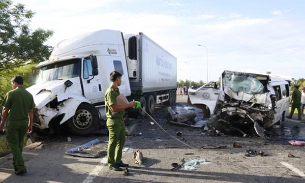 Cụ thể, qua khám nghiệm hiện trường, thu thập tài liệu, tài xế chiếc ôtô 16 chỗ đã vi phạm lỗi lấn làn đường, tông thẳng vào xe container mang BKS 51D – 411.21, kéo theo rơ-moóc mang BKS 51R – 215.75 đang chạy ngược chiều.