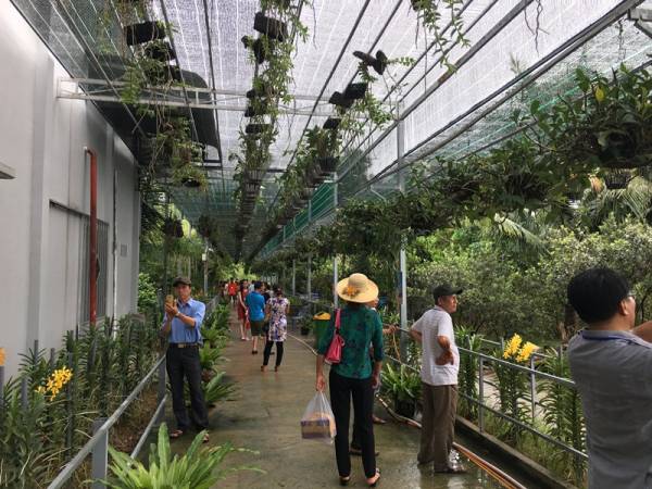 Khách du lịch tham quan một mô hình sản xuất hoa, cây cảnh ở Phú Quốc.(Ảnh: K.V)