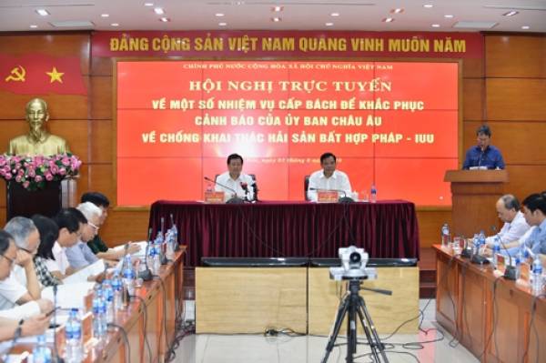 Sáng 3/8, tại Hà Nội, Phó Thủ tướng Chính phủ Trịnh Đình Dũng, Bộ trưởng Bộ NN&PTNT Nguyễn Xuân Cường chủ trì hội nghị trực tuyến bàn các giải pháp cấp bách khắc phục cảnh báo của Ủy ban Châu Âu (EC) về chống khai thác thủy sản bất hợp pháp - IUU.