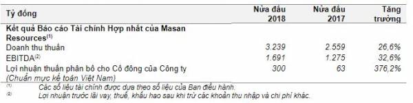 Công ty Cổ phần Tài nguyên Masan (HNX-UPCOM: “MSR”, “Masan Resources” hoặc “Công ty”), một trong những nhà sản xuất hóa chất hàng đầu trong ngành khai thác và chế biến khoáng sản tại Việt Nam, công bố kết quả kinh doanh của nửa đầu năm 2018.