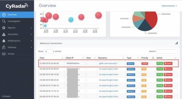 Hệ thống CyRadar ghi nhận cuộc tấn công của mã độc.