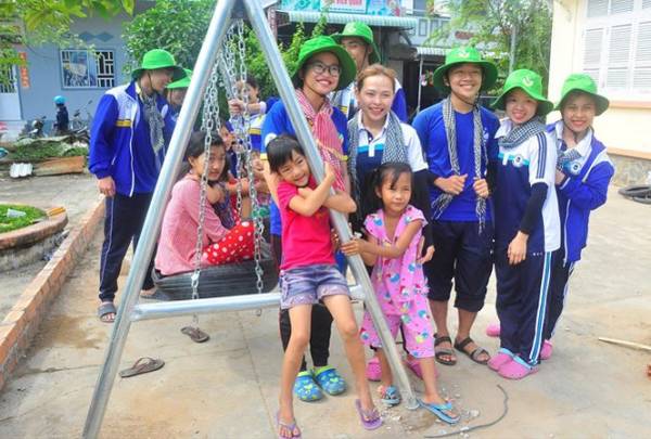 Các bạn sinh viên tình nguyện vui chơi cùng trẻ em địa phương.