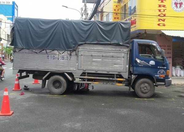 Sau cú va chạm, người mẹ 28 tuổi ởTiền Giang và con trai ngã xuống đường, còn xe máy bị cuốn dưới gầm xe tải. Cả hai được đưa đến bệnh viện cấp cứu nhưng cháu bé không qua khỏi.