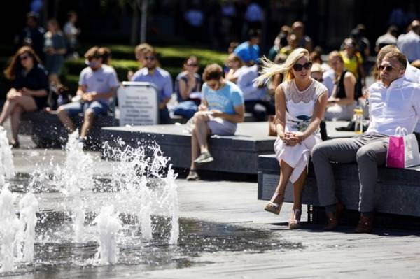Người dân nghỉ ngơi tránh nóng tại đài phun nước quảng trường Tòa thị chính ở trung tâm London, Anh ngày 2/7.