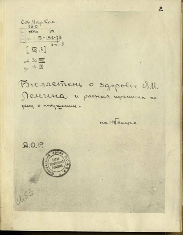 Theo thư viện Tổng thống, phần lớn các tài liệu về vụ ám sát Vladimir Lenin là những bản tin về sức khỏe của nhà lãnh đạo và các ghi chép của bác sĩ.