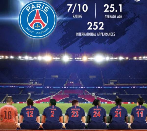Đội hình dự bị: Alphonse Areola, Thomas Meunier, Thiago Silva, Julian Draxler, Christopher Nkunku, Timothy Weah, Angel Di Maria