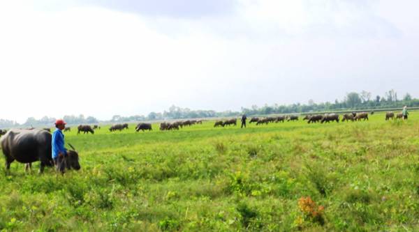 Khi mực nước lũ dâng cao suốt gần 3 tháng, khắp nơi ngập trong một màu nước đục, không có cỏ cho trâu ăn, thông thường người dân sẽ lùa trâu đến những cánh đồng gò cao vừa mới thu hoạch lúa để trâu ăn cỏ, sau đó lùa trâu len lỏi đến các cánh đồng khác xa hơn để trâu tìm thức ăn, cứ thế cho đến hết mùa nước nổi mới về nhà cột lại và cho ăn rơm khô...