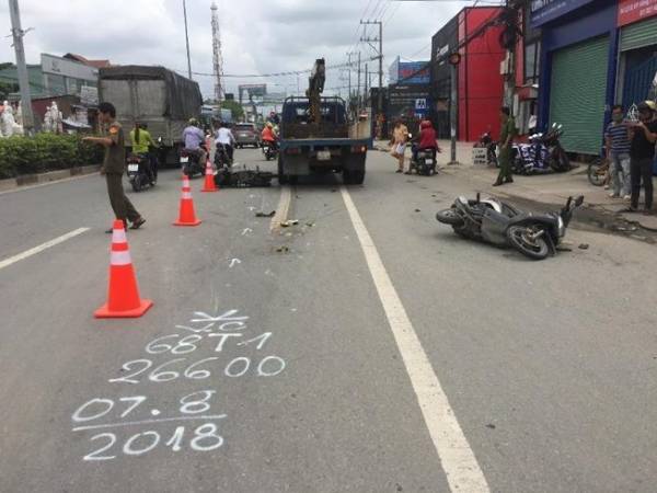 Trưa 7-8 trên quốc lộ 13 thuộc địa bàn tỉnh Bình Dương xảy ra va chạm giữa 2 xe máy và 1 ô tô tải khiến 2 người nhập viện cấp cứu.