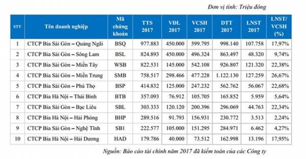 So với các doanh nghiệp trong ngành, Bia Sài Gòn – Miền Trung có quy mô khá tốt về vốn điều lệ, tổng tài sản và vốn chủ sở hữu. Ngoài ra, lợi nhuận sau thuế và hệ số khả năng sinh lời (ROE) trong năm 2017 của Công ty cũng thuộc nhóm dẫn đầu trong hệ thống.