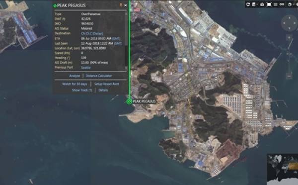 Bản đồ vị trí cho thấy Peak Pegasus đã cập cảng Đại Liên.
