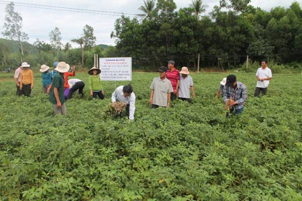 Vụ hè thu 2018, Trung tâm Khuyến nông Bình Định phối hợp cùng Trạm Khuyến nông huyện Phù Mỹ thực hiện mô hình trồng lạc thâm canh trên chân đất lúa chuyển đổi tại xã Mỹ Châu.