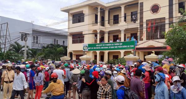 Sau cuộc đối thoại, rất đông người dân tụ tập trước cổng UBND xã Phổ Thạnh để phản đối HIỂN CỪ