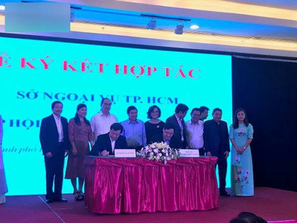 Bí thư Thành ủy Nguyễn Thiện Nhân chứng kiến lễ ký kết giữa Hiệp hội Doanh nhân TP.HCM và Sở Ngoại vụ TP.HCM