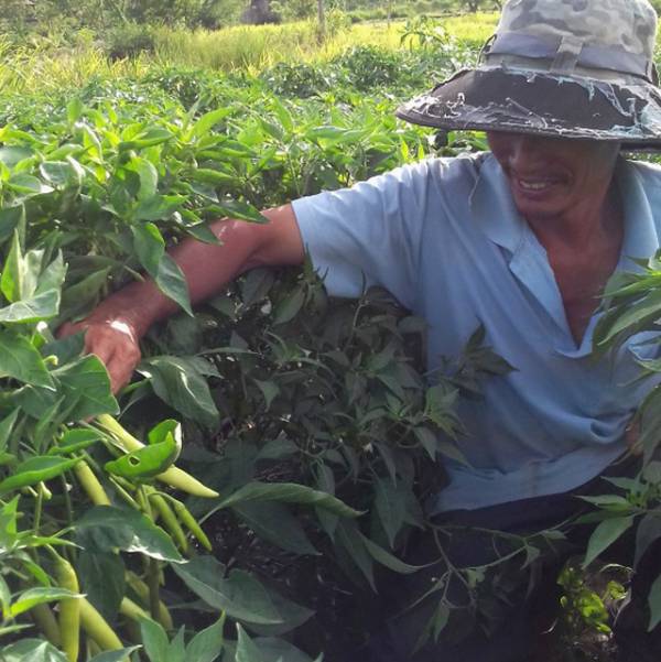 Sau khi thu hoạch hành, cây ớt tiếp tục phát triển.