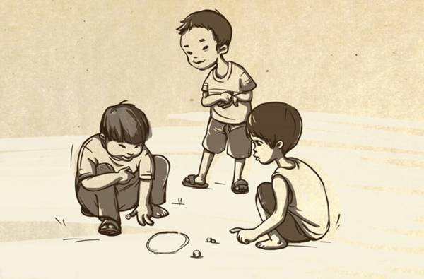 - Mày ra gốc cây hoa sữa đầu xóm chơi bắn bi với tụi tao nhé!