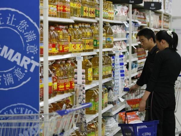 Hàng hóa được bày bán tại siêu thị của hãng bán lẻ Mỹ Walmart ở Bắc Kinh, Trung Quốc.