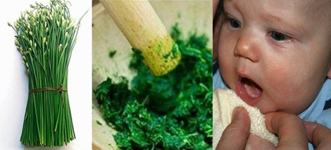 Rơ lợi cho trẻ bằng nước lá hẹ hoặc nước giá đỗ