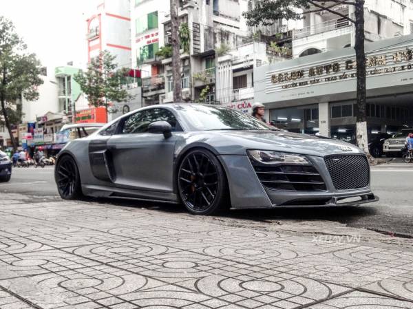 Ngoài là chiếc Audi R8 V8 được độ động cơ Twin Turbo đầu tiên và duy nhất tại Việt Nam, siêu xe này còn sở hữu gói ngoại thất hàng khủng của Prior Design. Nguyên bản xe có ngoại thất màu trắng nhưng gần đây xe đã được đổi sang màu xám tro bằng cách dán decal.