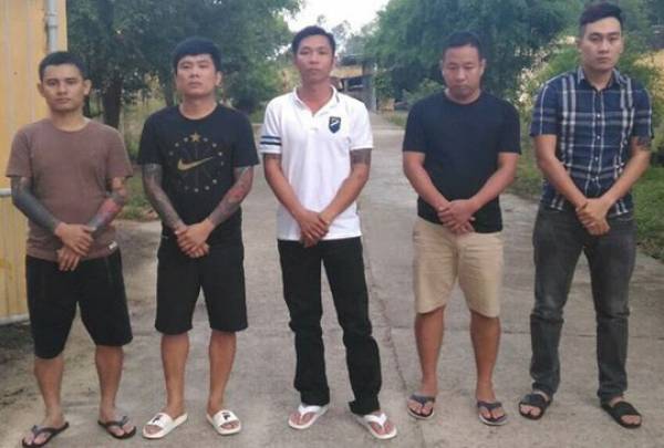 Các đối tượng Vi, Huy, Việt, Trường và Quốc Đông (từ trái sang) bị bắt Ảnh: Công an cung cấp