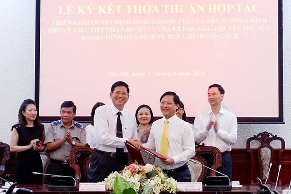 Nhằm tăng cường triển khai chỉ đạo của Thủ tướng Chính phủ về việc tiếp nhận hồ sơ và trả kết quả giải quyết thủ tục hành chính (TTHC) qua dịch vụ bưu chính công ích, ngày 17/9 Tổng công ty Bưu điện Việt Nam và Tổng cục Thi hành án dân sự (Bộ Tư Pháp) đã ký thỏa thuận hợp tác triển khai Quyết định số 45/2016/QĐ-TTg ngày 19/10/2016 của Thủ tướng Chính phủ.