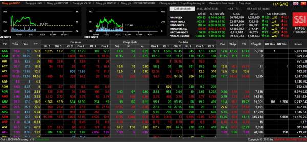 Kết thúc phiên giao dịch sáng 7/9, VN-Index tăng 0,74 điểm lên 958,93 điểm. Ảnh: Sanhose.