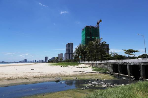 Hiện trường cống xả nơi phát hiện Công ty San Hô xả thải chui ra biển Đà Nẵng đầu tháng 9 ẢNH: NGUYỄN TÚ