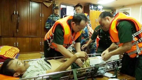 Trước đó, chiều 14.9, Bộ đội biên phòng Quảng Trị nhận tin từ tàu cá QT 97788 TS do ông Bùi Đình Trầm (41 tuổi, trú khu phố 5, TT.Cửa Việt, H.Gio Linh, Quảng Trị) làm thuyền trưởng, đang hành nghề đánh bắt hải sản ở vùng biển cách bán đảo Sơn Trà, Đà Nẵng khoảng 95 hải lý, cho hay có 1 ngư dân trên tàu là Phan Văn Bắc (46 tuổi, trú xã Gio Hải, H.Gio Linh) bị ngã vỡ xương bánh chè, sức khỏe yếu.