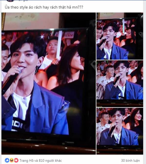 "Áo đi mượn của nhà thiết kế, nhiều người mặc nên bị rạn đường may", "Chắc đến sự kiện mới bị rách áo nên đành để như vậy", "Có lẽ Erik bị fan kéo rách áo"... là những dự đoán của khán giả.