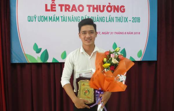 Bảo Duy là một trong 20 gương mặt xuất sắc được nhận giải thưởng của Quỹ Ươm mầm tài năng đất Quảng.