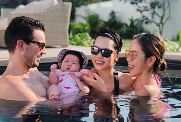 Siêu mẫu Hà Anh vừa cùng chồng và em gái cho con gái Myla đi nghỉ ở biển nhân kỳ nghỉ 2.9.