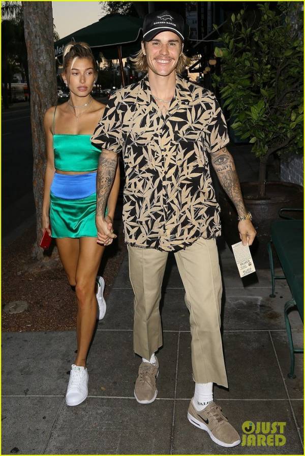 Justin Bieber nở nụ cười rạng rỡ khi đi ăn tối cùng hôn thê Hailey Baldwin ngày 31/8 vừa qua ở West Hollywood, California.