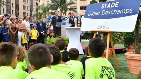 Hôm thứ Tư (12/9), HLV Didier Deschamps đã tới dự buổi lễ đặt tên sân của CLB nghiệp dư Cap d’Ail, nằm ngay đối diện sân Louis II ở Monaco. Đây là sự kiện nhằm tôn vinh HLV Didier Deschamps sau khi giúp ĐT Pháp vô địch World Cup 2018. Sân Cap d’Ail sẽ dùng tên mới “Didier Deschamps” nhằm tôn vinh vị HLV có công giúp ĐT Pháp vô địch World Cup. Đến dự buổi lễ có cả Hoàng tử Albert II của Công quốc Monaco. Đây là SVĐ thứ hai mang tên Deschamps sau SVĐ đầu tiên ở Bayonne, quê nhà vị chiến lược gia 49 tuổi. Trước đó, Deschamps từng được đặt tên cho một SVĐ khác tại thị trấn quê nhà Bayonne sau chiến vang dội tại World Cup 2018.