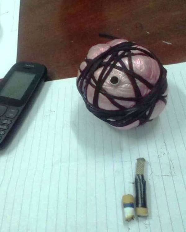 Qủa mìn nặng 0,2 kg cùng dây nổ được anh Q. phát hiện dưới gầm xe của mình.