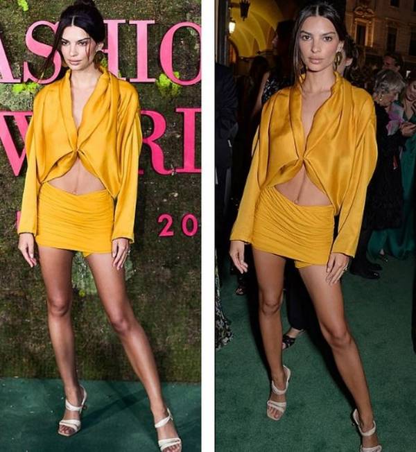 Emily diện mốt không nội y tại lễ trao giải thời trang Thảm Xanh diễn ra tối qua ở Milan.