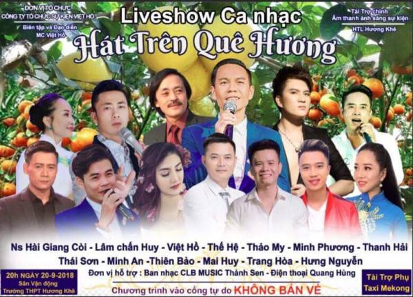 Với sự yêu thương và ủng hộ của anh chị em nghệ sỹ, vào lúc 19h30 ngày 20/9/2018 anh quyết định thực hiện Liveshow với chủ đề: “Hát Trên Quê Hương” tại sân vận động Trường THPT Hương Khê, Hà Tĩnh. Chương trình hoàn toàn miễn phí, vào cổng tự do, để phục vụ bà con nhân dân.