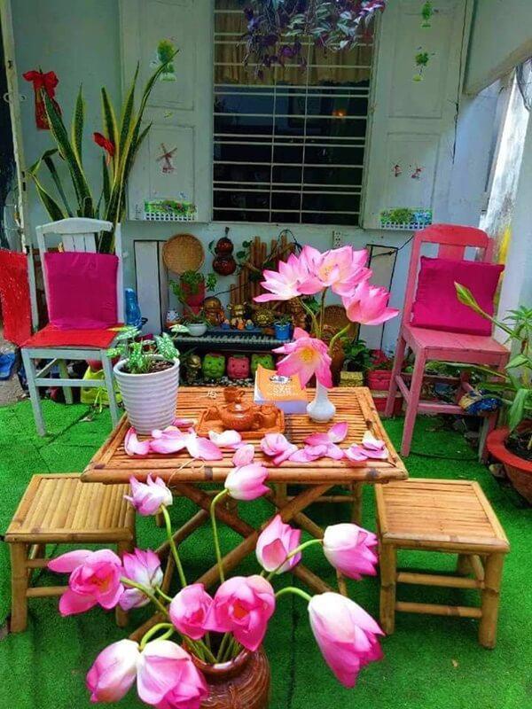 Một khu vườn nhỏ, cùng nhau người nhà uống trà, thưởng hoa còn gì bằng.